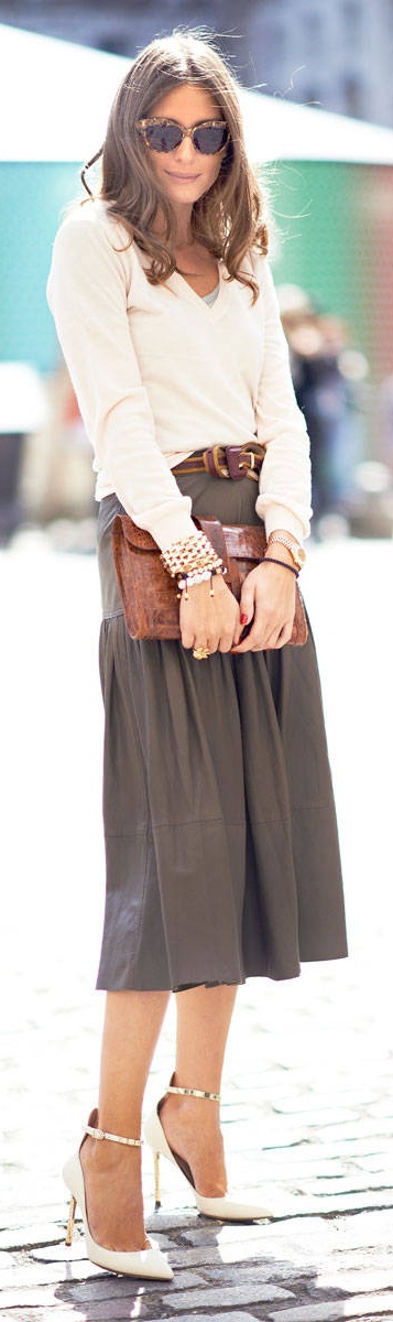 In the fashion world, we can sometimes get so caught up in mixing colors, prints, and patterns that we lose the subtlety and class of true style. The all-white look, whether in winter, spring, or summer, brings the right amount of freshness to each season while staying current with appropriate pieces. For now, we can focus this with white jeans and a t-shirt (we all have those!), or try a short-suit like shown above. I also love the full length A-line which brings some old glamour with it.