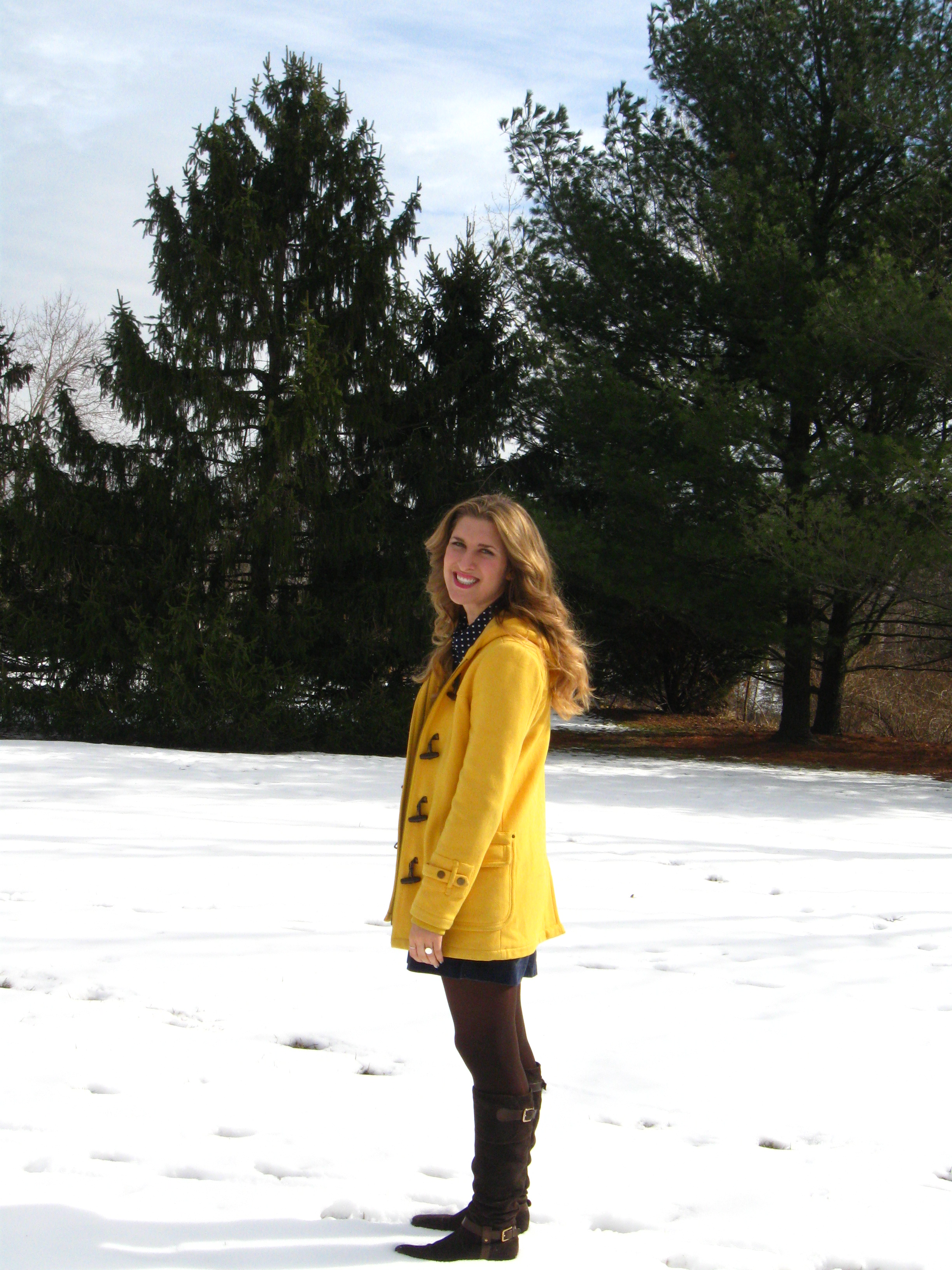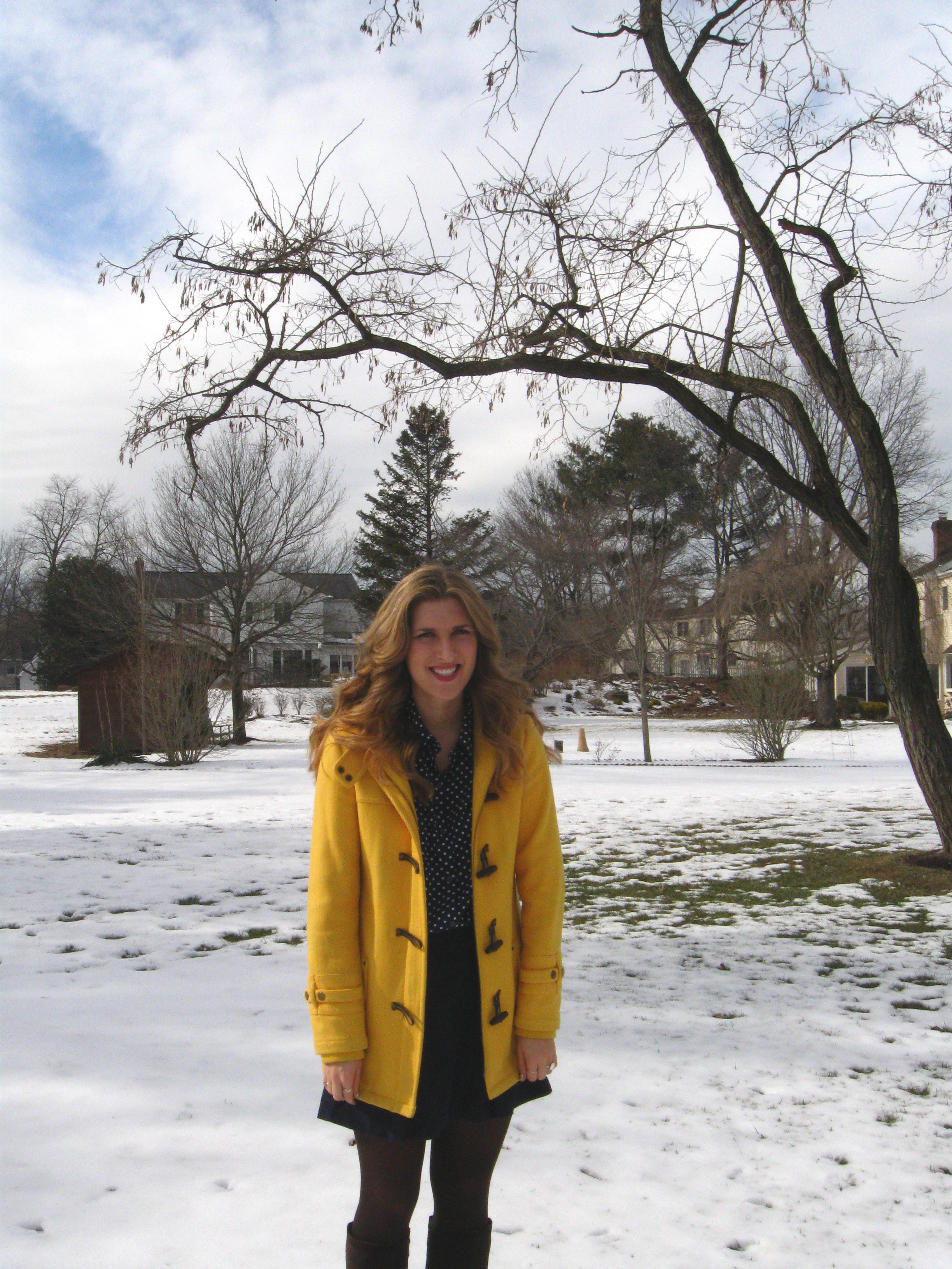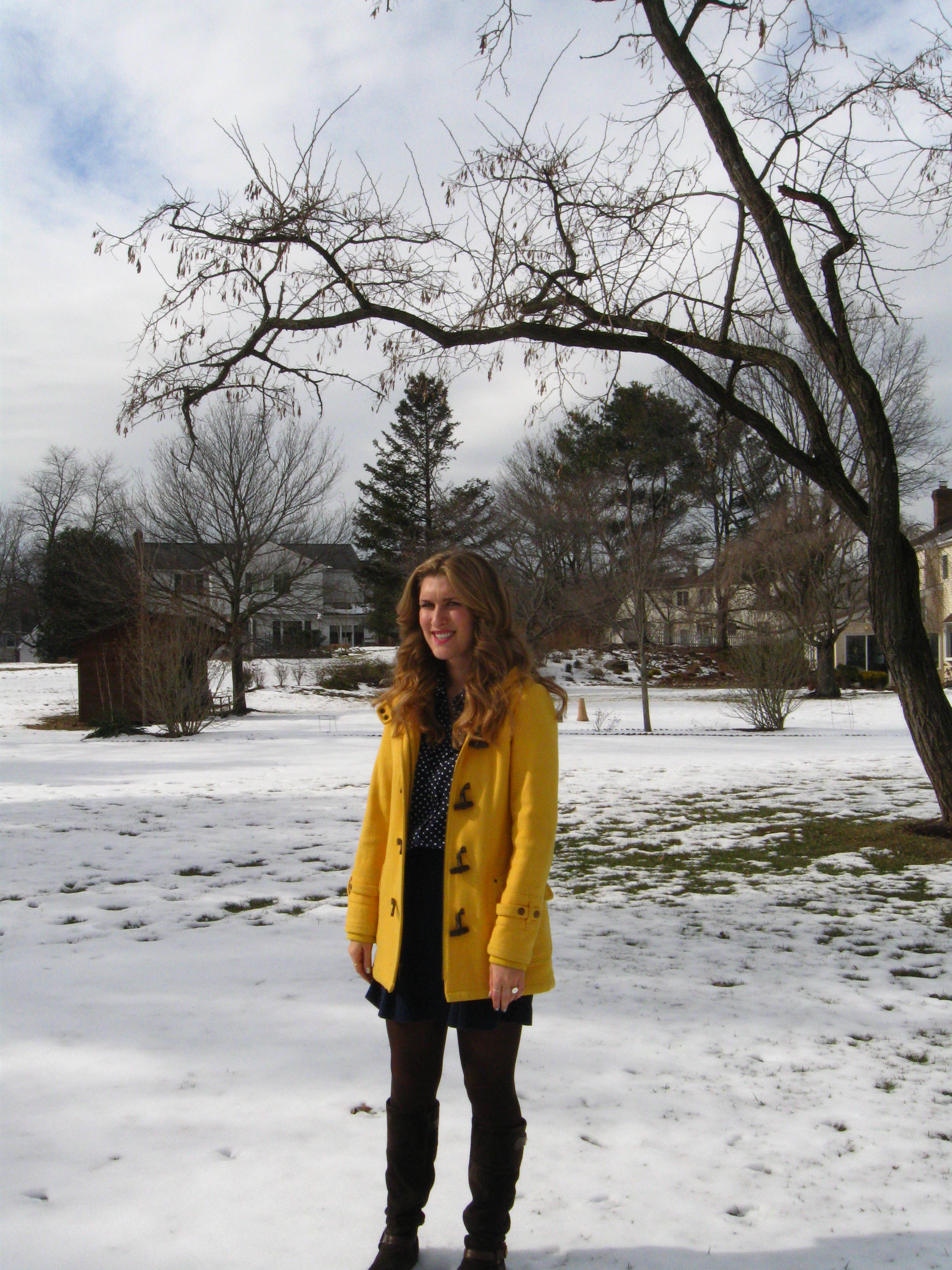 I don’t have a ton of explanation for this look; the truth is I’ve had a hard week, I wanted to infuse a little “happy” in my day, and this occured. I can always trust polka dots, navy blue, and my Paddington toggle coat to brighten my day.