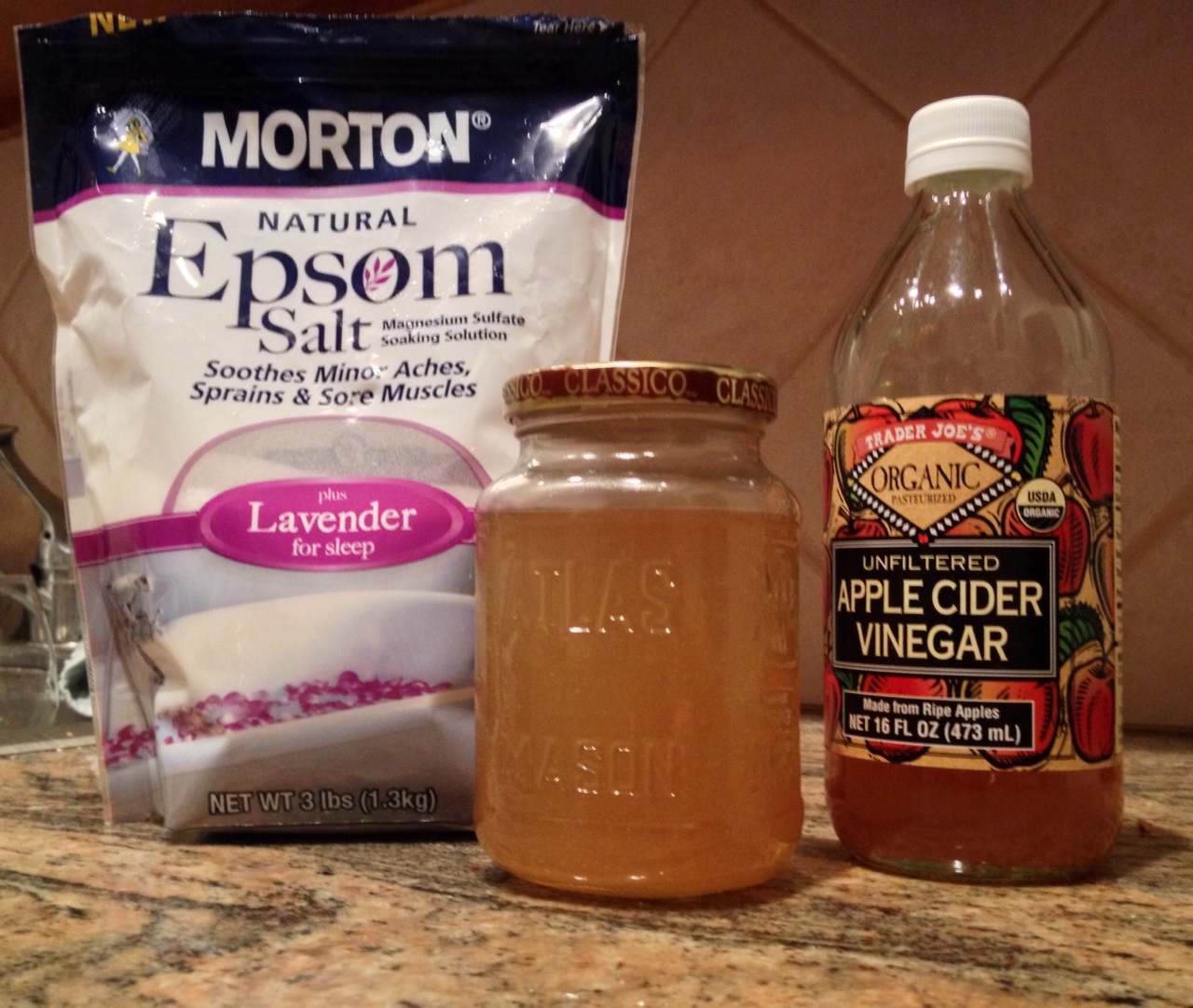 [Epsom salts, Apple Cider Vinegar Toner, Apple Cider Vinegar]