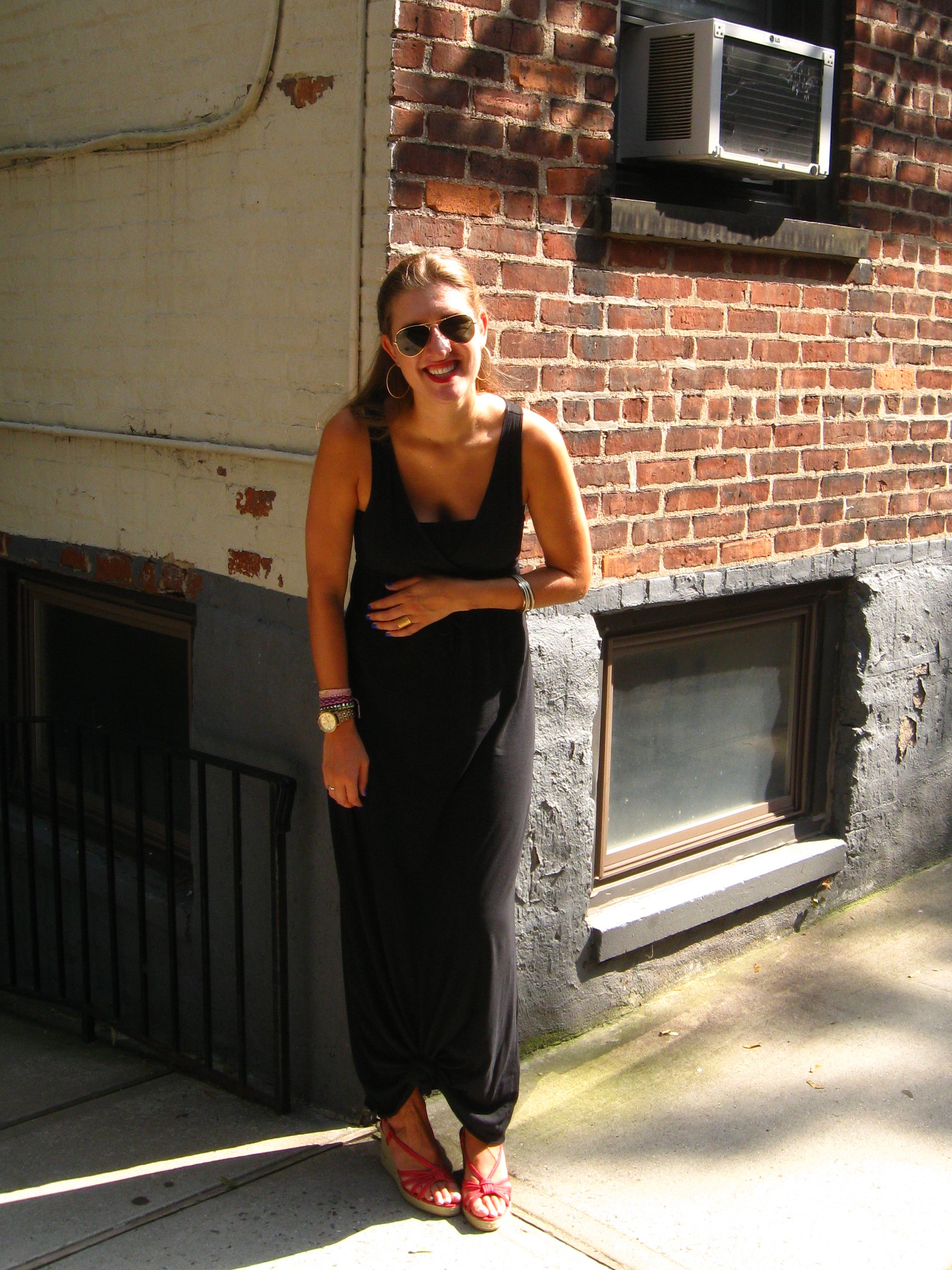 [Outfit Details: Dress: Gap Outlet; Vest: J.Crew; Sandals; Loeffler Randall; Sunglasses: Ray Ban]