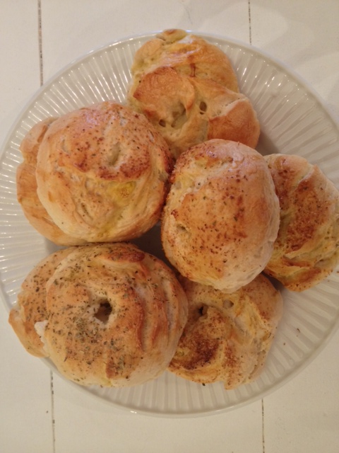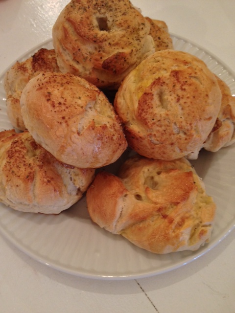 Bake at 425 degree for 20 minutes. Serve warm with cream cheese, eggs, or whatever the heart desires!